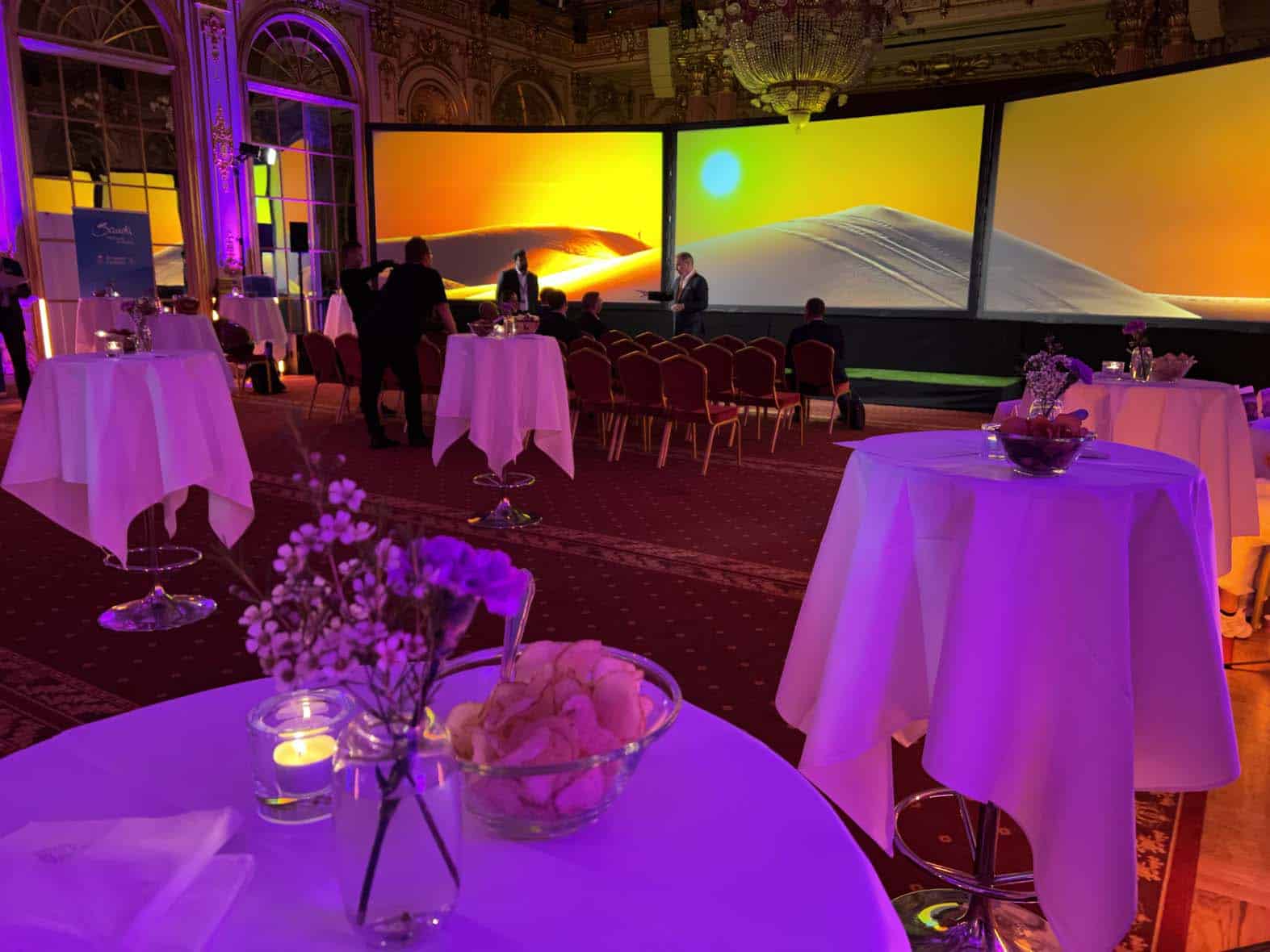 • LED-vægge og storskærme tilpasset lokalets lys og størrelse